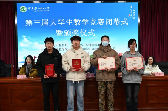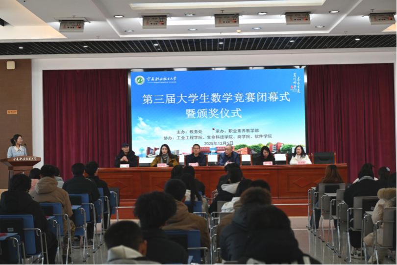 12月5日中午,我校第三届大学生数学竞赛圆满闭幕。本次竞赛由教务处主办、职业素养教学部承办,商学院、生命科技学院、工业工程学院、软件学院共同协办。职业素养教学部党支部书记何涛、主任席朝晖、副主任赵云燕、办公室主任杨颖,以及大赛全体工作人员和参赛学生参加了闭幕式。